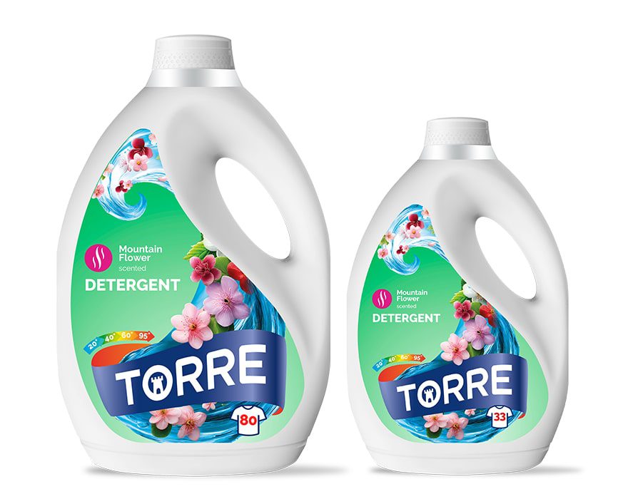 TORRE liquid detergent removes tough stains with powerful cleaning action and performs effectively at all water temperatures. Easy to transport and store.